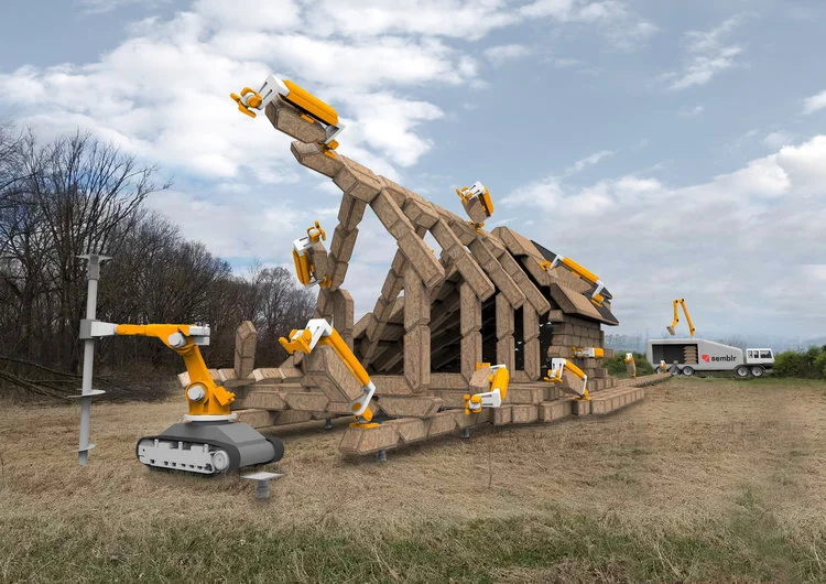Unbuilt proposal for a robot-built timber house.